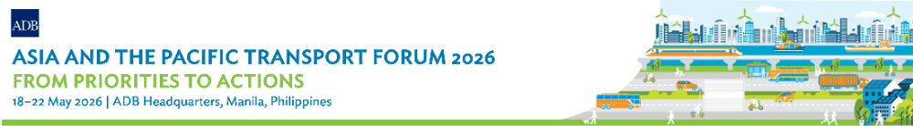 Photographs and/or audio-visual footage may be taken and/or live streamed during the Asia and the Pacific Transport Forum 2026. You agree that your name, affiliation, image and likeness captured during the Forum may be published on the forum’s website and ADB website and may be used by ADB and its contractors for purposes of Forum live streaming, recordings, materials, and publications, or for further institutional purposes of ADB, and that you waive any rights of compensation or ownership thereto.